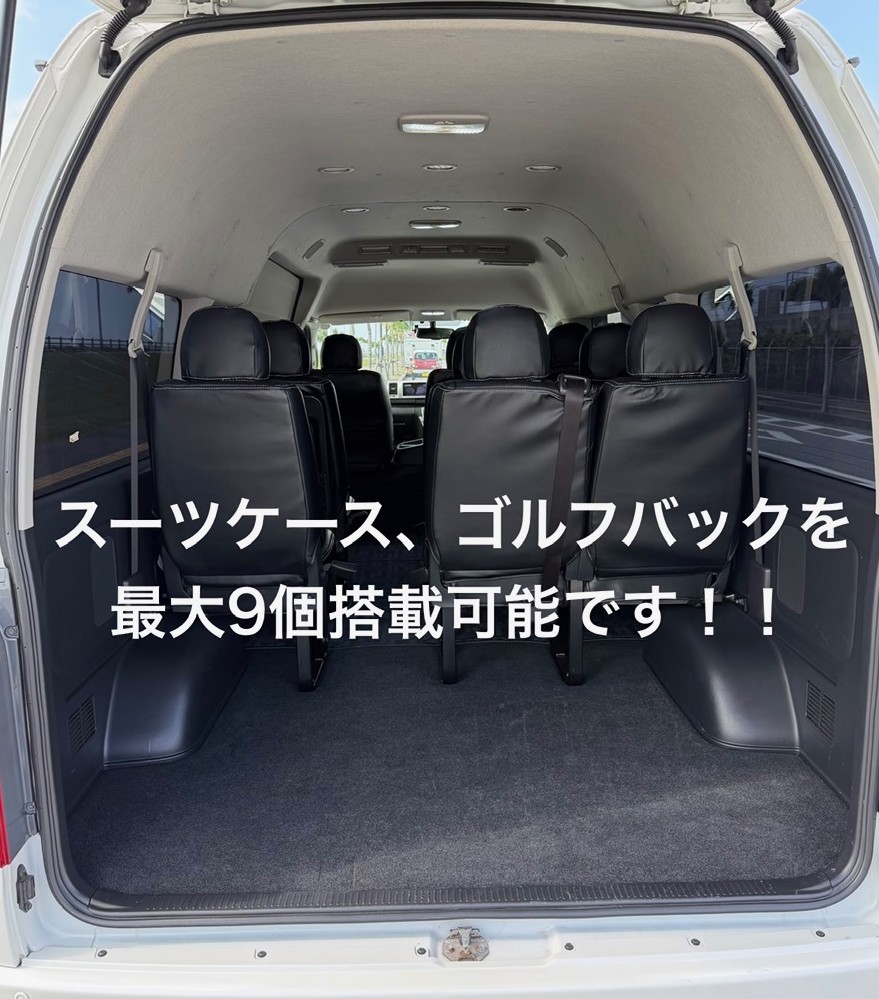 ハイエース・グランドキャビンは、大人数での移動をただの移動ではなく“ひとつの上質な時間”へと昇華するために生まれた車です。10人がゆったり過ごせる広々とした室内は、まるで移動型のラウンジのように心地よく、優れた静粛性と広い視界が旅そのものを豊かに彩ります。コンパクトカーを複数台使う煩わしさや費用負担を解消し、一台で仲間全員が同じ景色を共有できる効率性と一体感を備えています。また、スーツケースやゴルフバッグを最大9個搭載できる圧倒的な積載力が魅了です。